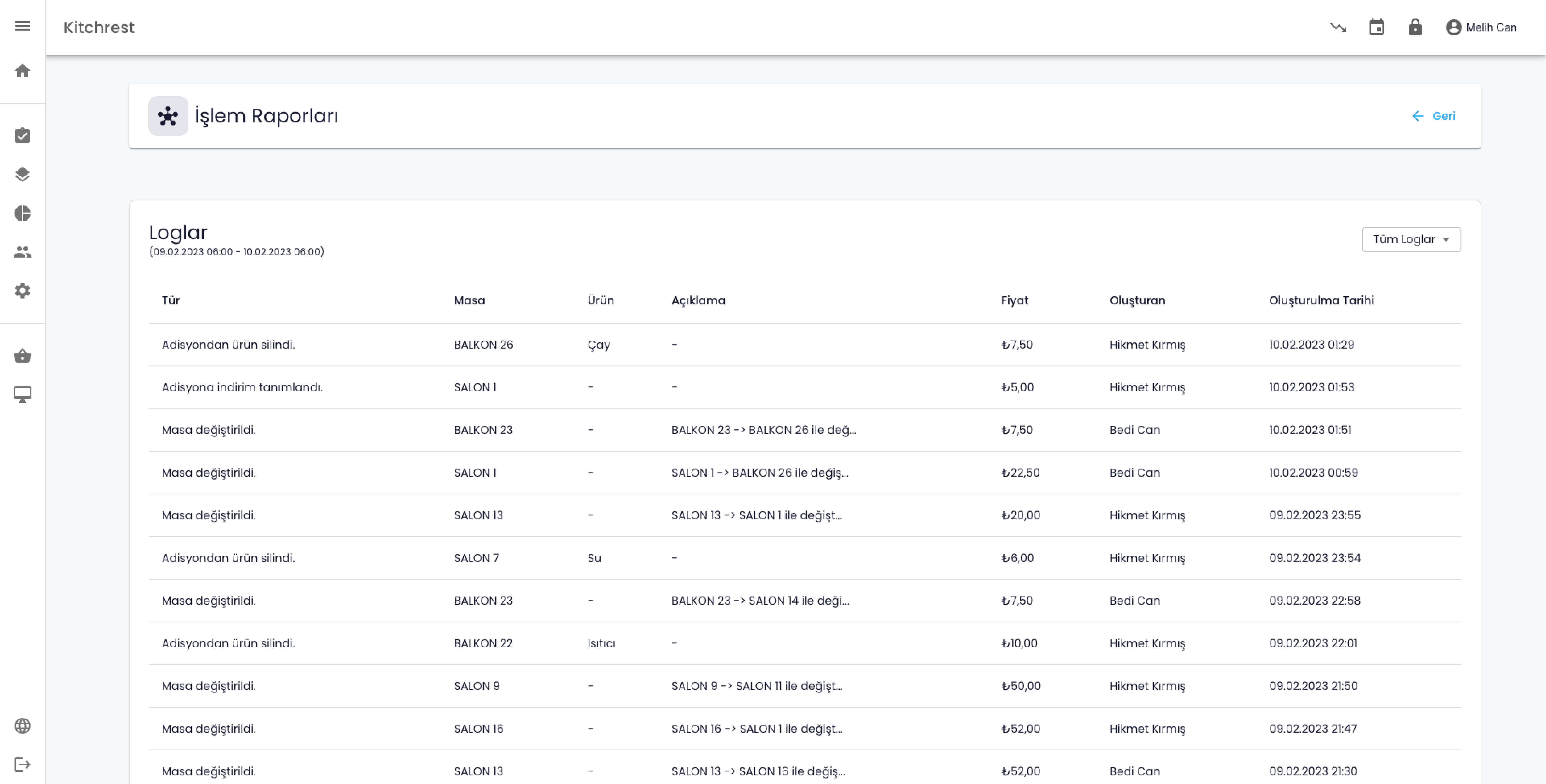 Gelişmiş raporlama seçenekleri sayesinde, toplam ciro, ürün tüketimi, ödeme türleri gibi bilgilerin dışında aktivite loglarını da takip edebilirsiniz.