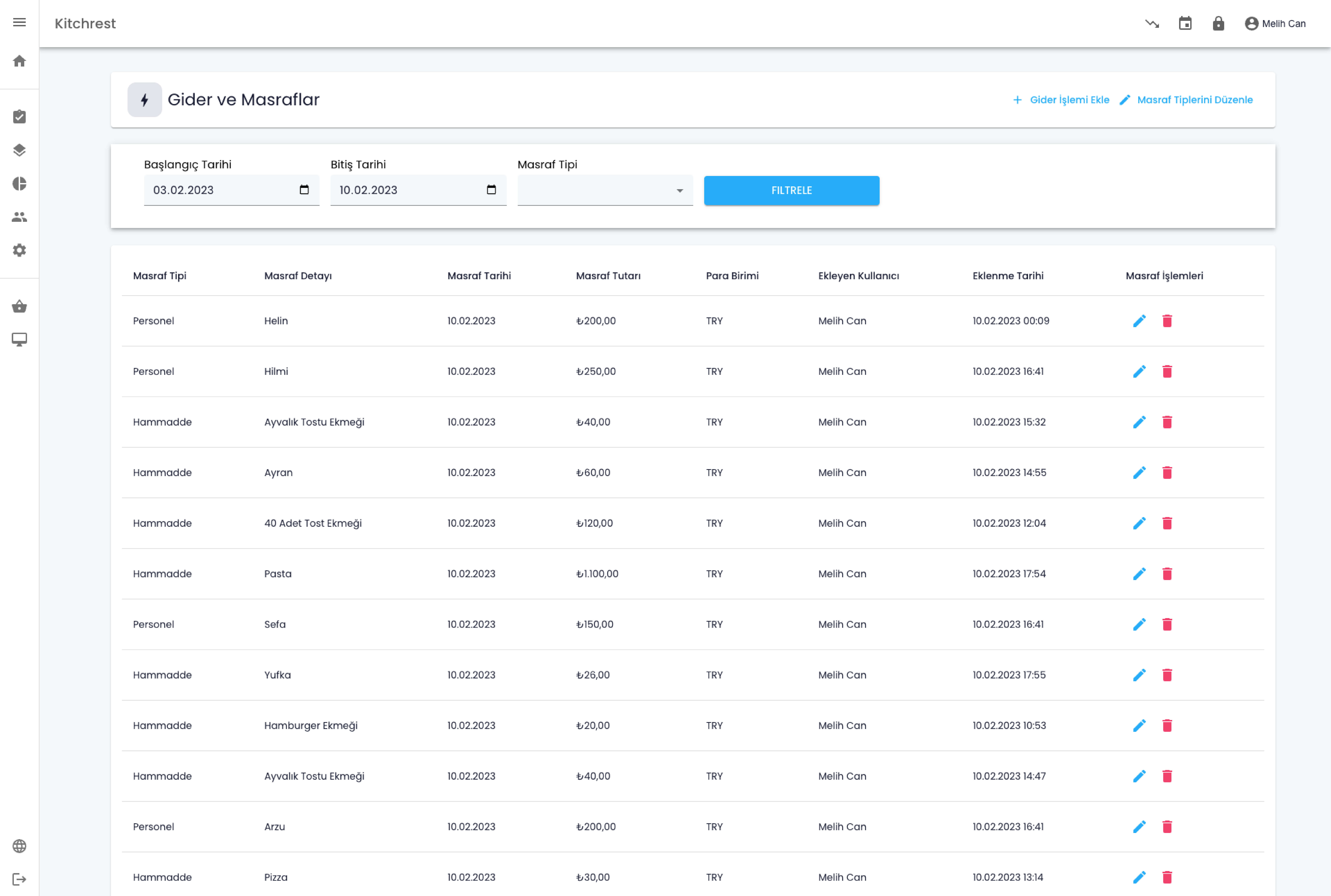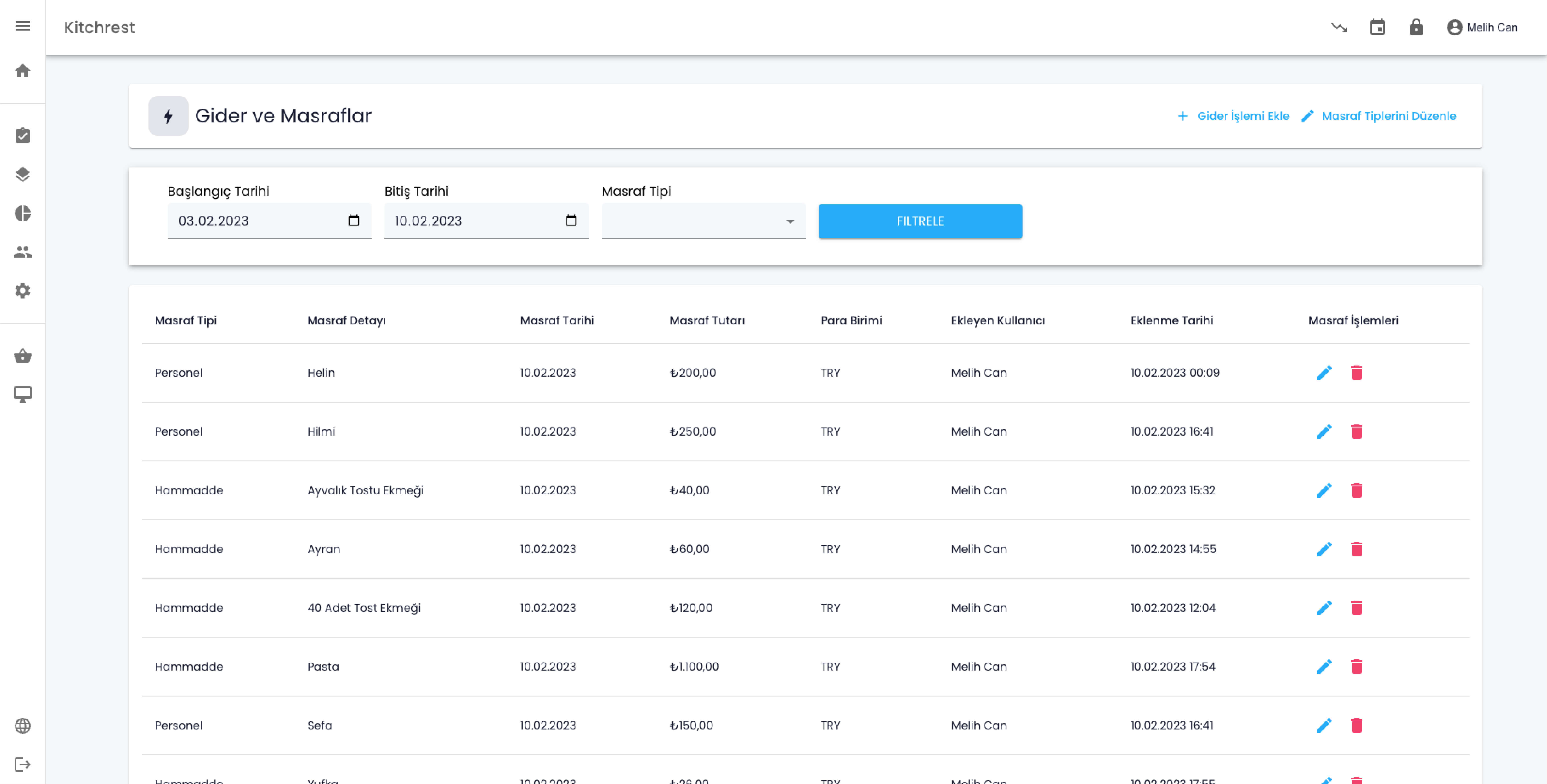 Kitchrest Masraf Yönetimi, restoranınızda gider takibini daha kolay yönetmenizi ve performansınızı ölçeklemenize yardımcı olur.