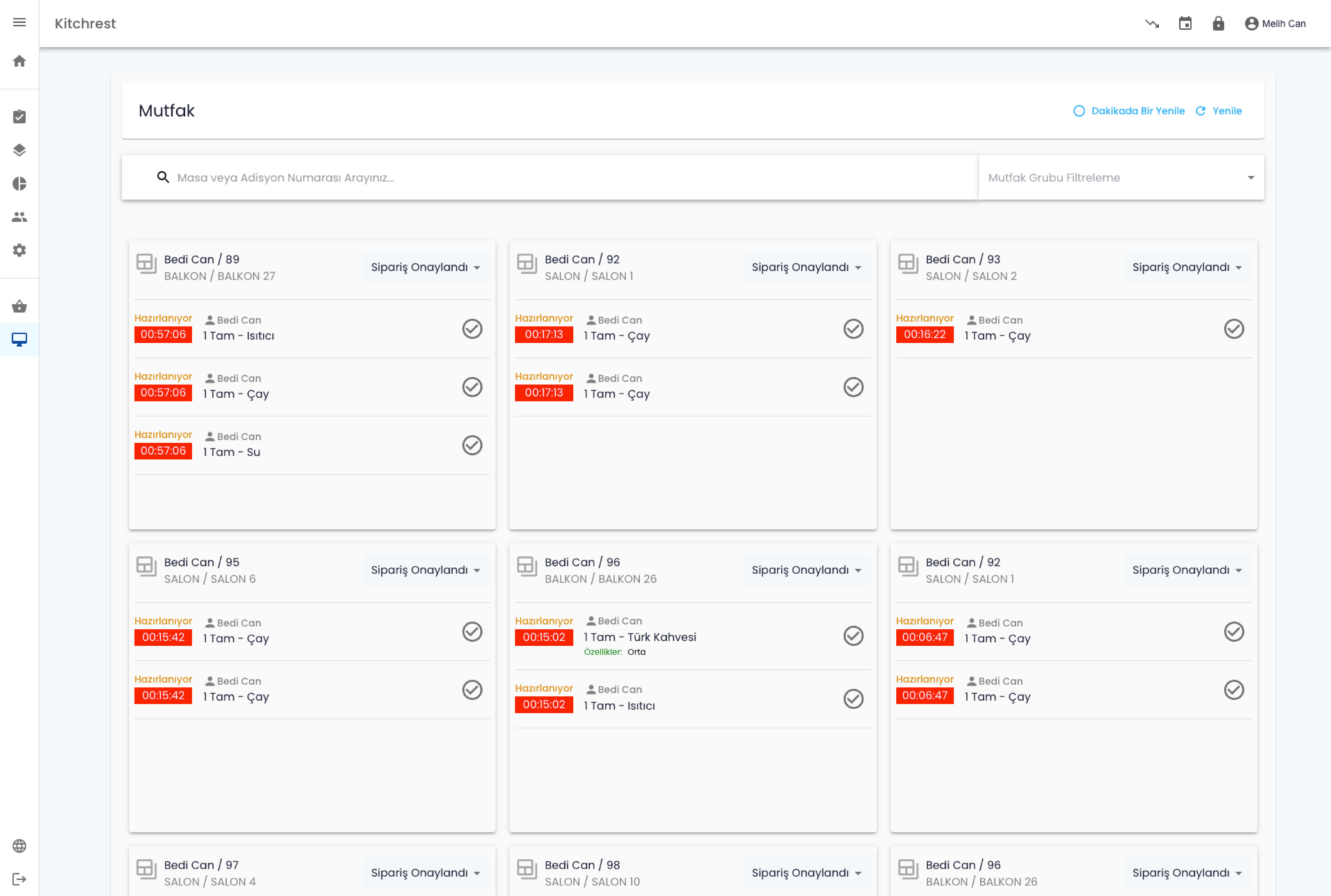 Kitchrest KDS, siparişin alınma anından, servisin tamamlanmasına kadar mutfak ve servis personeli arasında kesintisiz iletişim sağlar!